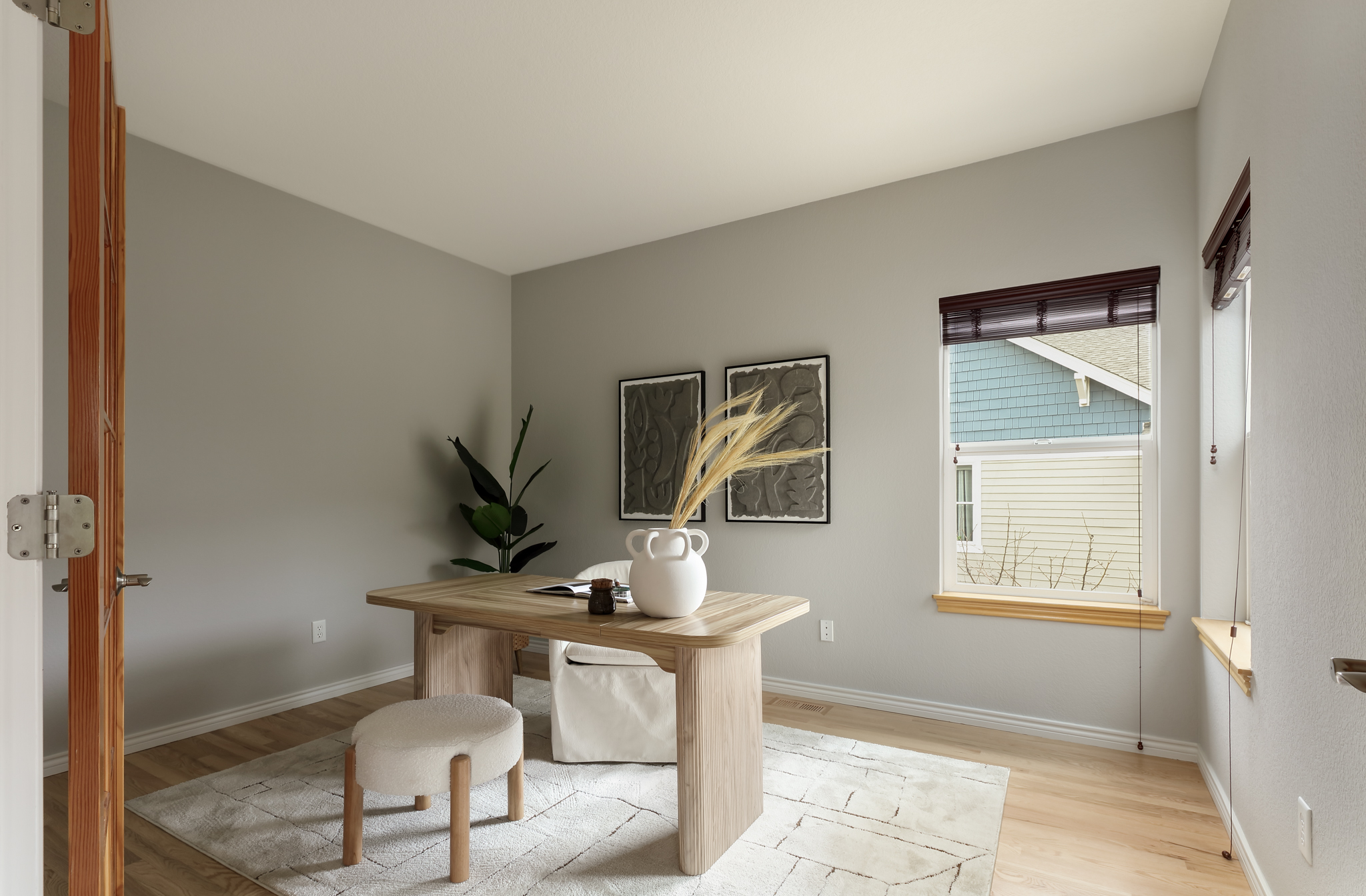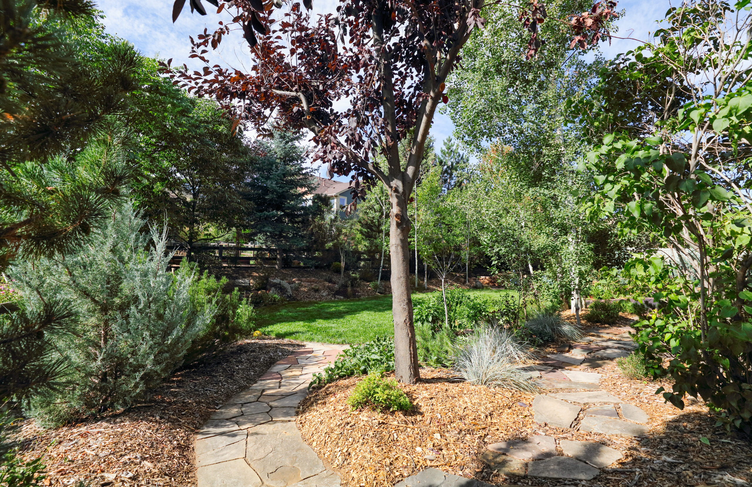 The back yard is where this property separates itself. A covered deck and flagstone patio create a natural flow between inside and out. Garden beds, stone pathways and seating nook and established fruit trees (apple, plum, and cherry) fill the space with purpose. The landscaping is mature and rooted in permaculture principles. This is a yard designed by someone who really uses it. Have dinner on the deck overlooking the garden that grew the vegetables on your plate.